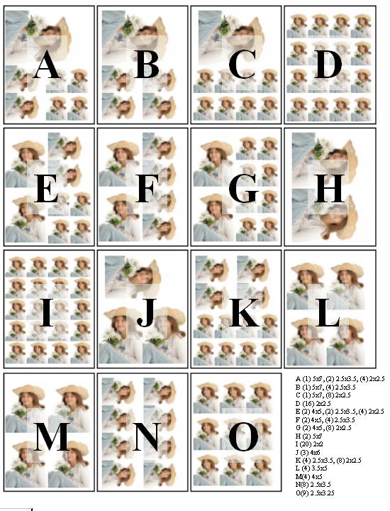 K (4) 2.5x3.5, (8) 2x2.5